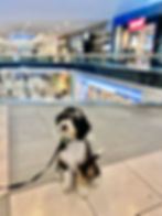 Today Chloe and I visited an indoor mall, where we practiced all of her commands around distractions. This was a busy location for Chloe, and she had some trouble focusing, especially when we first arrived. There were some groups of people, a few other dogs, music, food, and other kinds of distractions around which all provided great training opportunities. At first she appeared a bit overwhelmed, but over time she began to adapt to the new environment. At times she was curious and excitable, but the more we trained the easier time she had staying focused on her commands. She was able to Heel quite well, and generally wanted to stick close to me while we walked around the mall. However she did seem tempted to try to sniff people that walked past us, so she needed regular reminders to stay focused on her positioning beside me and not veer off to sniff or approach people. She did pretty good with her Come to Sit, and always understood to come to me whenever she was called, even with distractions around. She did need a bit of guidance to help her through the maneuver and to find the correct positioning, but this is something we will continue working on. Overall she did a good job with her Sit and was able to perform it when asked with minimal to no guidance needed, and she was usually able to hold the position for around thirty seconds, which isn't super long but is a good start! Place was a bit more tricky with some of the objects we practiced with, as she lacked the confidence to jump onto higher objects. She was able to climb onto some low objects, but was not able to make even small jumps onto objects that were slightly out of her climbing reach. The command Chloe struggled with the most today was Down. She seems to understand the command as she is able to perform it when in low distraction environments, however at the mall she didn't seem comfortable performing it when asked. She needed consistent guidance to perform Down, and was only able to remain in the position for a moment or two before attempting to stand or sit back up. Towards the end of the session she did become slightly better about holding her Down, though this seemed to be simply because she was feeling a bit tired and wanted to rest.