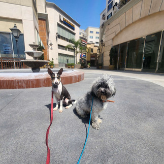 Outside there are plenty of fountains and places for us to relax and practice, and Frida didn't have any difficulty in these areas. When we moved to the inside parts of the mall, Frida started to behave a little worse, then tried pulling hard away from me several times. This was mostly around the upper floors where we could see down. I also used a slip lead today instead of her prong collar, which I believe made it more difficult for her to follow commands. She pulled away hard enough where her eyes were red and she cried. She tends to be strong minded, but usually she follows through after. When we went back outside, she went completely back to normal and we had a good rest of the day! I think she just needs more time to adjust to the mall environment.