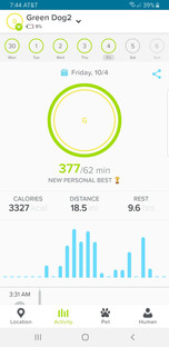 Our trip to Culver City included a diversion to Venice Beach. I know, not exactly around the corner. Halford as is evident from the Whistle Activity screen shot made it all the way there and back (not exactly sure 18 miles is accurate). So what does Halford do when give the opportunity to relax, sleeps with the Freshman.