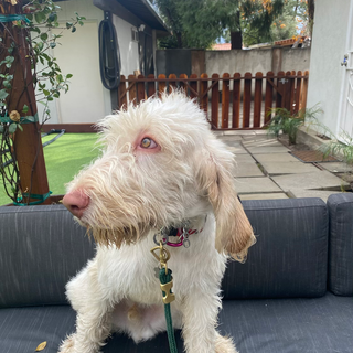 Lucca is a 6 month old Spinone pup who is here for our two week board and train. While being a loving pup at home, Lucca is very timid in public. Lucca responds to the “sit” command at home but has a ways to go with learning his other commands. Through Lucca’s timid personality he has a tendency to bark at new objects like people and dogs who pass by him quickly but has a great relationship with the other dog at home. Stay tuned for his progress with all obedience and commands !