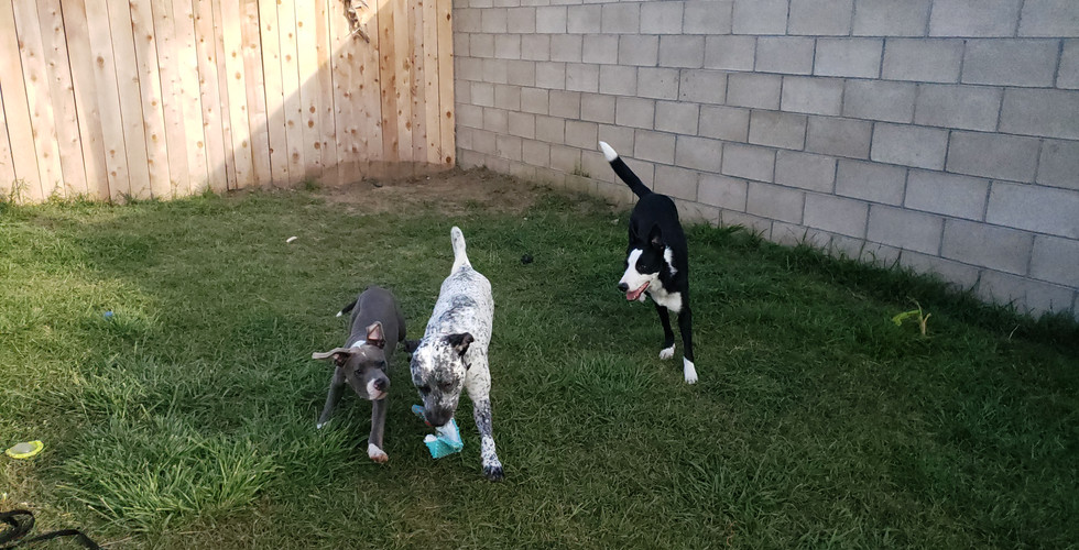 Lucky is coming along to much better now that he is sleeping well! Today he met his two "foster" siblings Leo and Nico and the three of them got along famously. Lucky is a bit timid and his play style is a little erratic with a couple behaviors we will work on (mounting, licking inappropriately, etc) but overall he is a very sweet and playful pup! We worked on his Heel, Down, and Sit today. His heel is coming along nicely, he is Heeling almost too close now so we are working on getting him to walk in a way that doesn't get in the way of walking. We did some distance/duration work with his Sit and Down getting him to not only let me walk away after giving him one of the two commands but also doing them at a distance from me. Overall he is doing awesome!