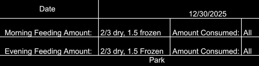 We took advantage of the breaks in the rain to get some time outside today! Luka was excited to be back at the park and clearly had a lot of fun, while also getting in some structured practice with his commands. For the most part, he did well and showed good engagement. There were a few moments where he wanted to get playful and hug my feet instead of focusing on work, but that’s totally okay and part of the learning process. We’ll keep working on building his focus and clarity during training sessions!