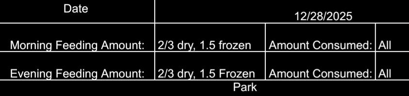 On a health note, Luka had some loose stool last night and again this morning, so I added a bit of pumpkin to his meals to help firm things up. I’ll continue to keep an eye on him and let you know how he’s doing.