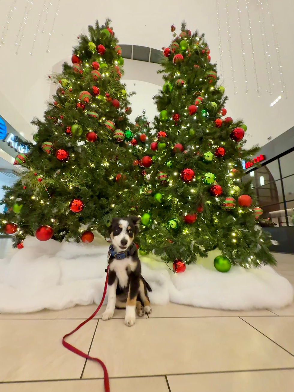 For today’s adventure, we took a trip to Cerritos Mall to expose Oreo to the busy holiday shopping crowd. Upon arrival, Oreo was a little scared due to the noise and activity, but with some positive reinforcement and reassuring affirmations, he quickly calmed down.