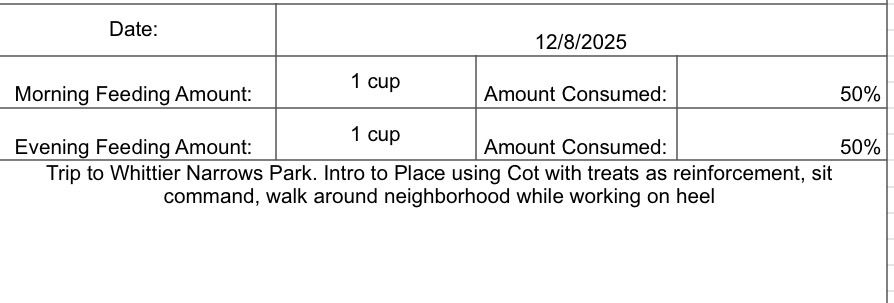 He comes to us with very minimal knowledge of basic commands, no leash-walking experience yet, and the typical puppy play-biting. Over the next 21 days, Oreo will learn to become a well-mannered and obedient companion through consistent, clear communication and balanced training—both at home and while discovering new people, places, and experiences.