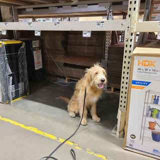 Ricky experiences Home Depot today! It was more crowded than I had anticipated but Ricky didn't skip a beat. We practiced Down, Place, Sit and Heel with some Come to Sit. It has been chilly up here recently so we didn't spend too much time in the garden section. We did work on his Heel inside next to some plant displays. There was a family with a couple of little girls who passed by and said "what a good boy" while he was in his Sit. We also started practicing our commands with some distance as well. It was a little difficult but I know he will get it the more we practice.
