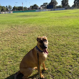 Today I took Tazz to a local park to reinforce all of his commands with real-world distractions—think kids playing sports, parents cheering, dogs in the distance, and all the unpredictable park energy. Despite the activity, Tazz handled himself with noticeable maturity in many moments, and I'm especially proud to share that he’s officially graduated off the prong collar! He’s now responding to a combination of verbal cues, leash guidance, and e-collar stim with no need for prong reinforcement. That’s a big win in his training journey.