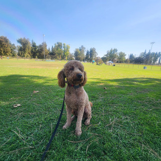 Teddy and I went to Whittier Narrows Park today with several other trainers and their dogs! This was pretty tough for Teddy, and he wanted to get playful and say hi to all the new dogs. While he did a fine job with most of his commands, he had significantly more trouble holding his positions without breaking around his new friends. When this happens, we want to make sure Teddy follows through with resuming his original position as quickly as possible. We don't want to laugh it off and say it's fine just this once, as he will quickly learn that he doesn't need to listen. When we are ready for him to leave his position and allow him to sniff around or say hi, we use the word, "Break!"