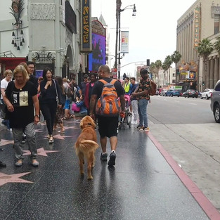 Off leash heel with multiple distractions at the Hollywood walk of fame.